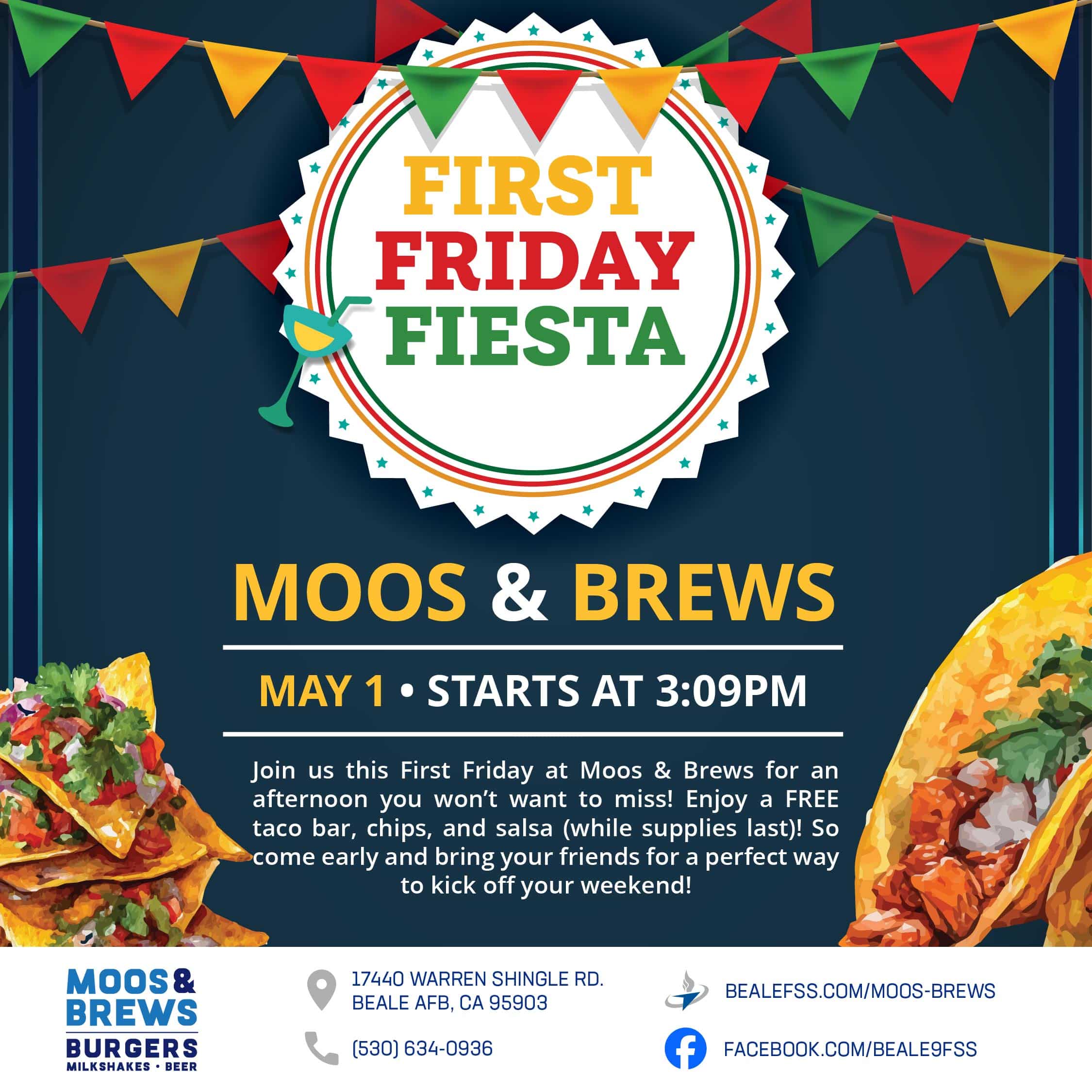 Free Taco bar, Chips and salsa (while supplies last)