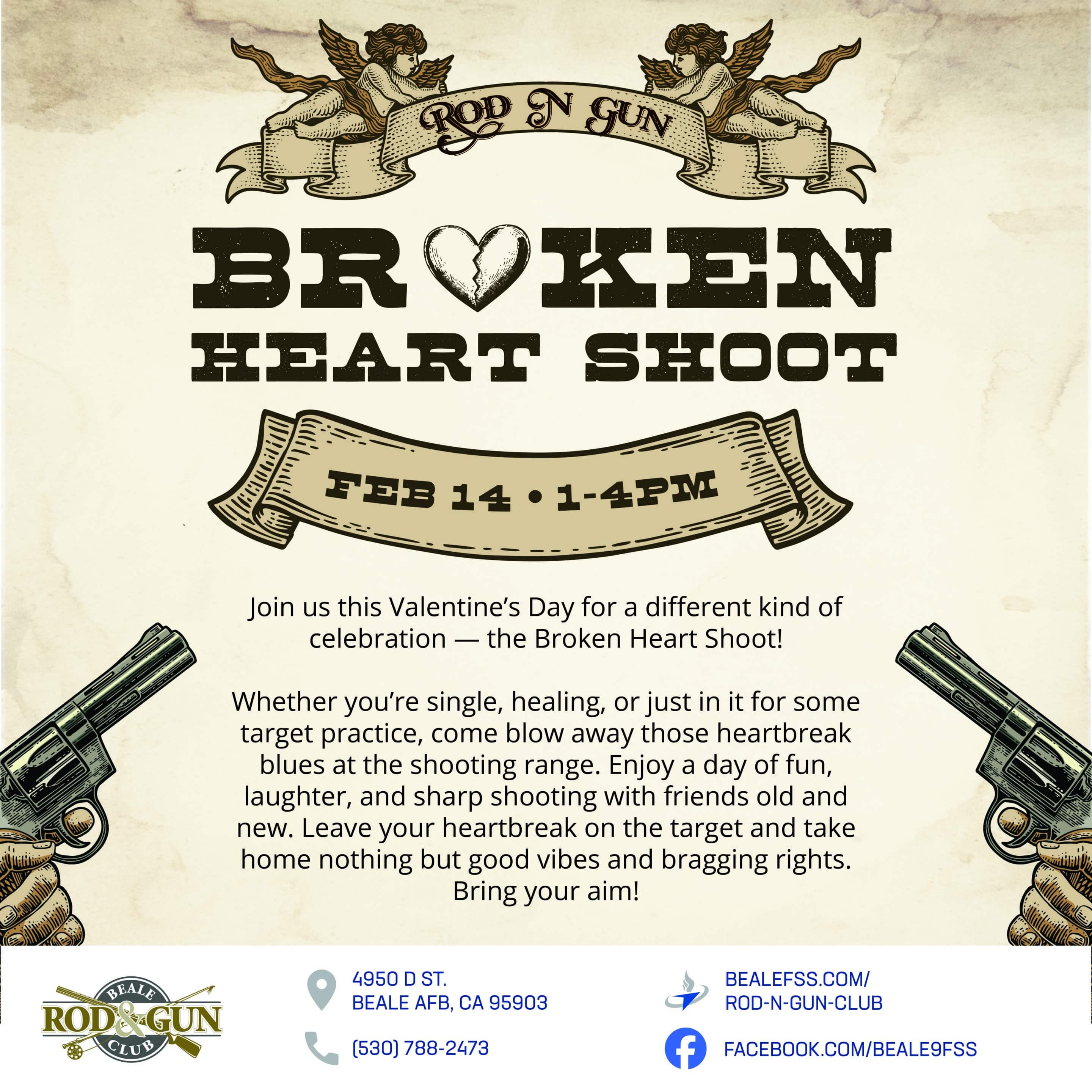 Broken Heart Shoot Feb 14, 1–4pm Beale Rod and Gun Club Cost: $10 Join us this Valentine’s Day for a different kind of celebration — the Broken Heart Shoot! Whether you’re single, healing, or just in […] |